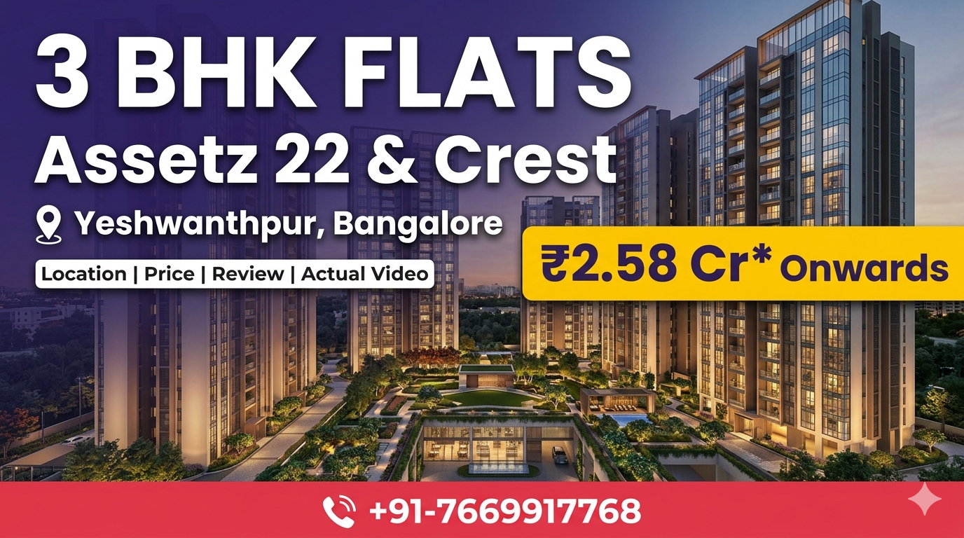 ☎️+91-7669917768 | Assetz 22 & Crest | 3 BHK Flats In Yeshwanthpur Bangalore | ₹2.58 cr onwards* | Location | Price | Review | Actual Video
