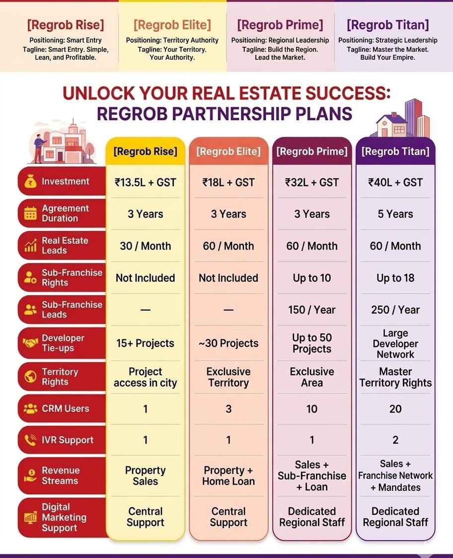 Top 10 Real Estate Franchise of India - Learn why Regrob is India's most successful real estate franchise. Scalable models, AI tools & full support for profitable growth.
