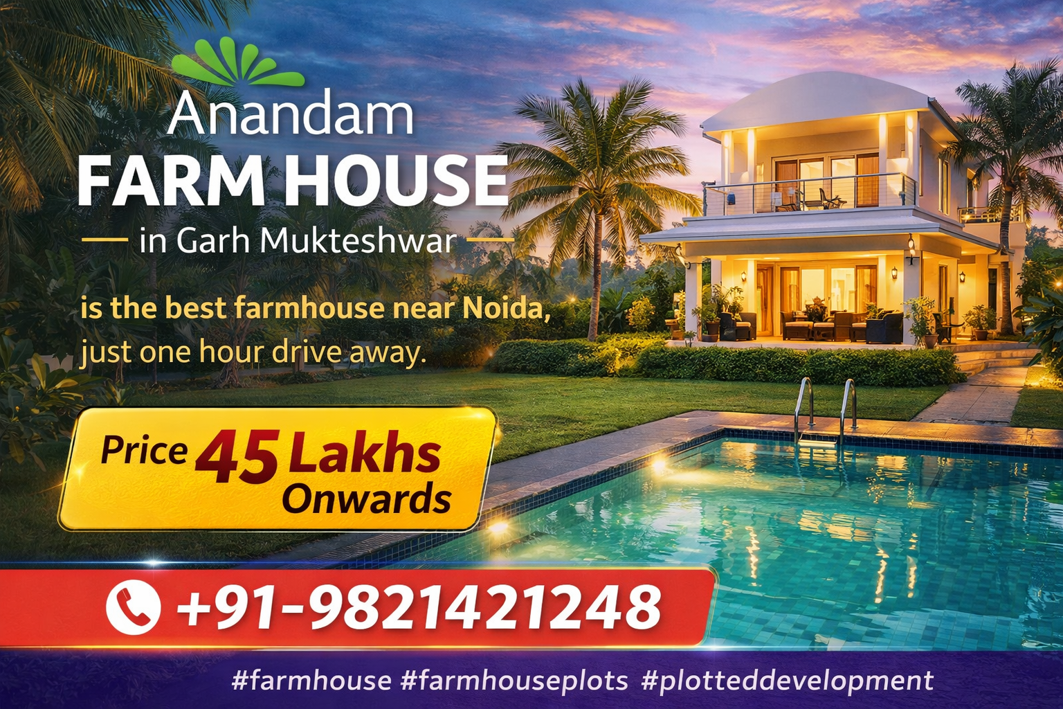 ☎+91-9821421248 | Anandam Farm House in Garh Mukteshwar is the best farmhouse near Noida, just one hour drive away. Price 45 Lakhs Onwards