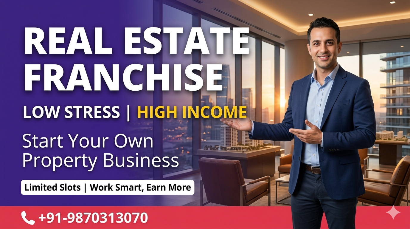 ☎+91-9870313070 | Low-stress real estate business franchise opportunity designed for consistent growth and high income potential. Ideal for working professionals, entrepreneurs, and investors